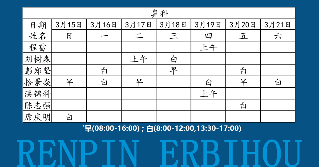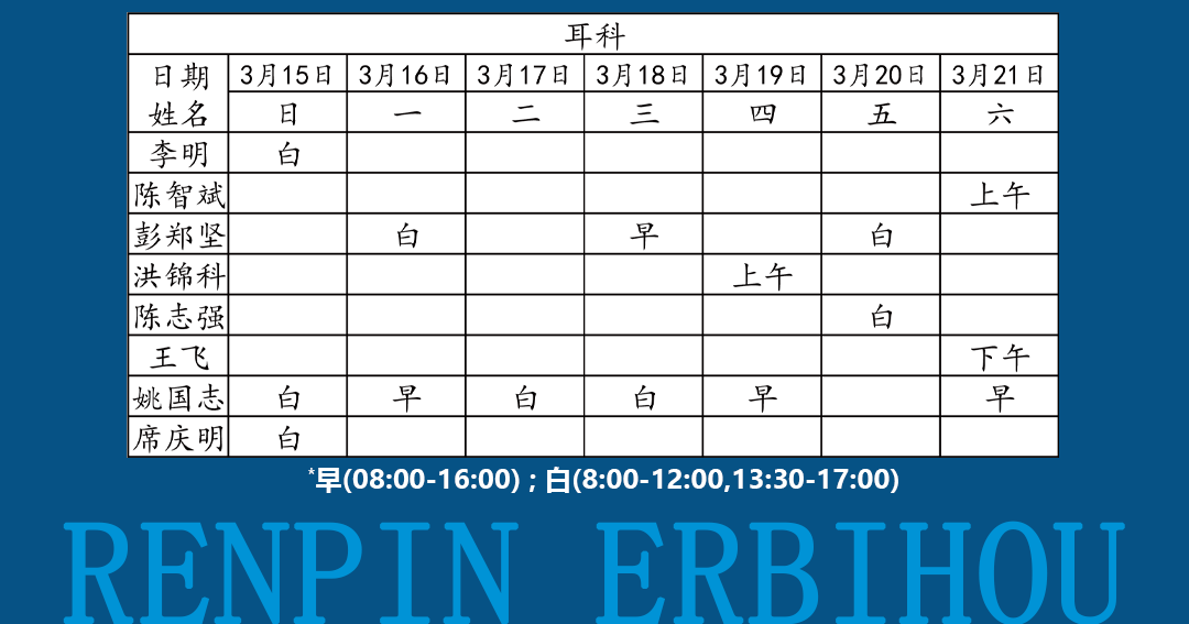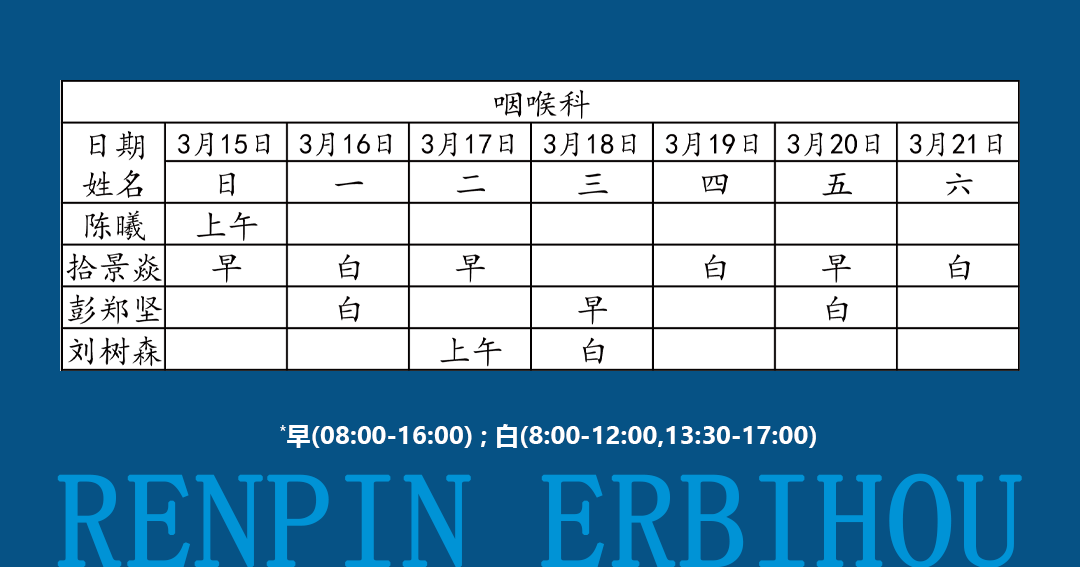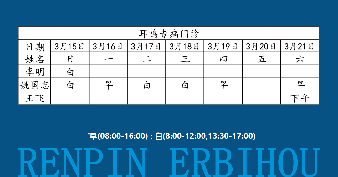 如有临时调整,以当日出诊信息为准!